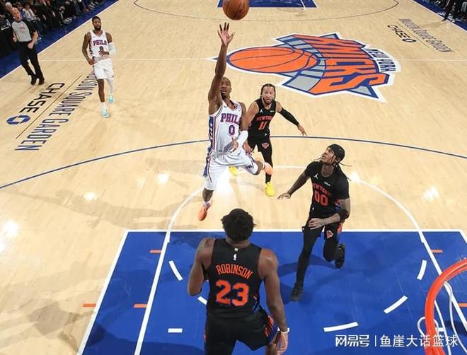 第三节比赛唐斯罚球2中2,76人一波10-0后唐斯连得4分,德拉蒙德命中三分后巴洛内线得分,接下来尼克斯打出一波11-2完成反超,马克西罚球2中2后埃奇库姆中投命中,埃奇库姆上篮得分后布伦森抛投命中,博纳暴扣得分后布伦森罚球2中2,埃奇库姆罚球2中2后罗宾逊罚球2中2,末尾阶段两队进攻对轰,三节比赛结束76人领先1分。第四节比赛罗宾逊补篮得分,马克西命中三分后罗宾逊打成2+1,麦凯恩命中三分后马克西命中三分,罗宾逊扣篮得分后麦凯恩投篮命中,本来之后布里奇斯、阿努诺比帮助尼克斯紧咬比分,可之后埃奇库姆大爆发,加上德拉蒙德等人发挥76人慢慢拉开比分,最终76人爆冷击败尼克斯。